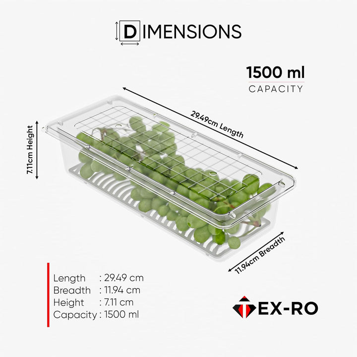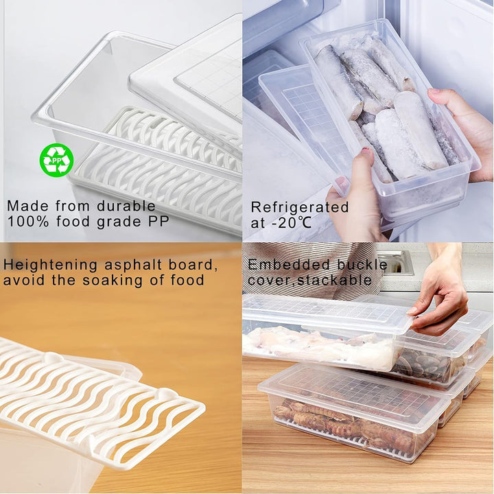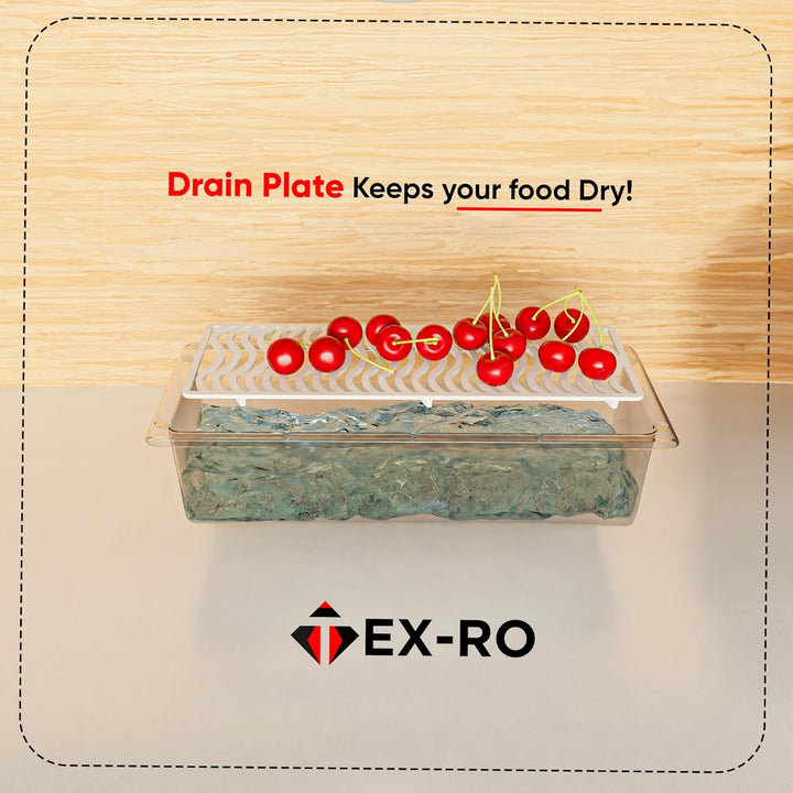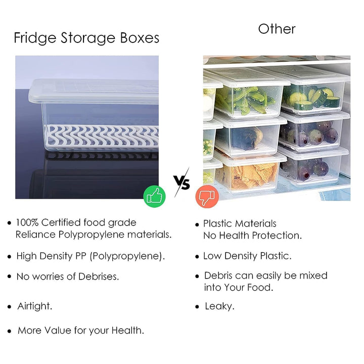 - WITH DRAIN PLATE AT BOTTOM: Fridge containers for storage comes with a drain plate below, which drains the moisture from the food which helps in keeping the fruits & vegetables fresh all over the long durations. Effective to prevent bacterial growth.