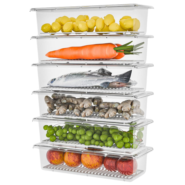- MULTIPURPOSE USE: Fridge storage boxes can be used for storing vegetables fruits meat fish left over food etc. Or can be used to store dry ingredients in the kitchen in the storing racks. Fridge organizer lid prevent from various odor in the refrigerator.