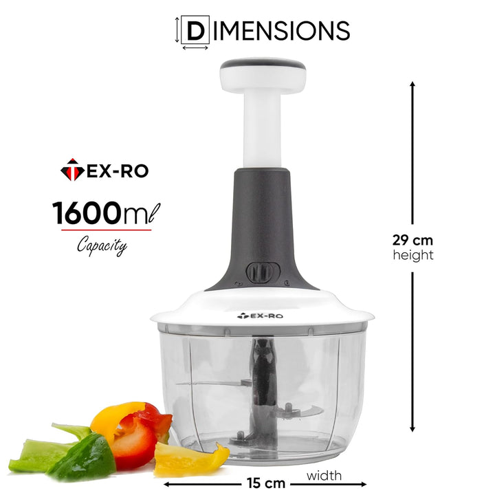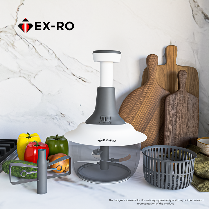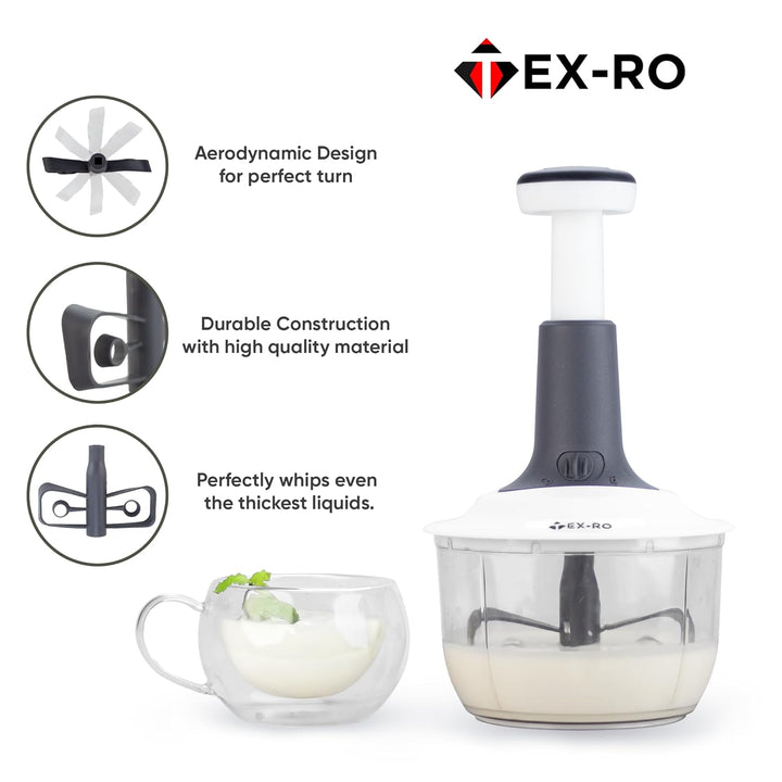- Effective Push Technique: Chopping becomes more convenient with the push of the lever as your entire weight comes into play. Complete chopping your vegetables or whisking your eggs with just a few pushes. Control the size you want with the number of pushes.