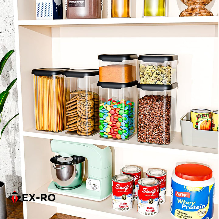 - BPA Free and Food Grade Material - TEX-RO pantry storage airtight container set are made of durable plastic, BPA free, which have a longer life than many other brands plastic containers. Clear air tight containers make it convenient to see what’s inside, you can easily get what you want without opening every container.